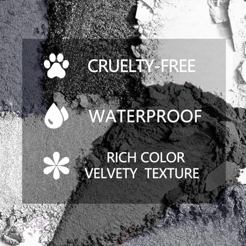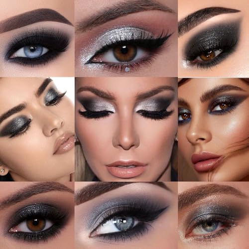 Specification: Black Grey Smokey Eyeshadow Palette,Highly Pigmented Matte Black White Gray Silver Smoky Eye Shadow,9Colors Cool Toned Eyeshadow Palette Black Radiance Eyeshadow Long Lasting Eye Makeup for Goth Look