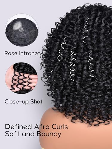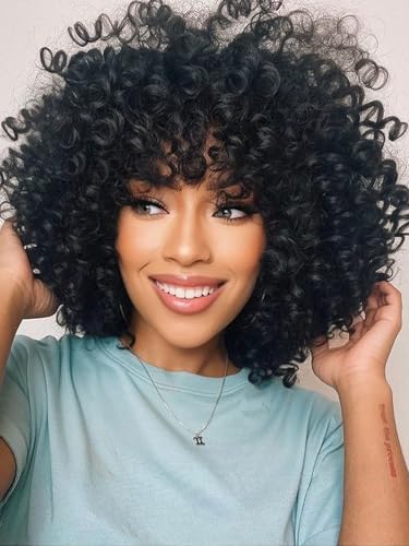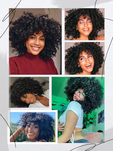 Specification: Curly Afro Wigs for Black Women Short Curly Wig with Bangs Kinky Curls Curly Hair Synthetic Wigs for African American Women (Black)