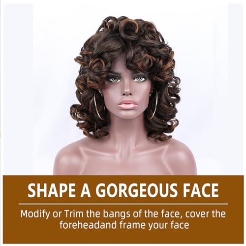Specification: Curly Wigs for Black Women Soft Honey Blonde Short Curly Wig with Bangs Afro Loose Curls Synthetic Wig for African American Women (1B/30)