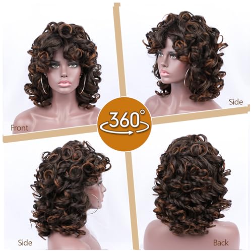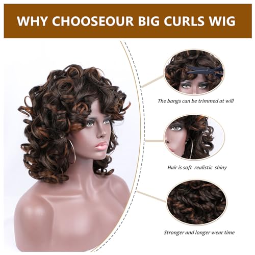 Curly Wigs for Black Women Soft Honey Blonde Short Curly Wig with Bangs Afro Loose Curls Synthetic Wig for African American Women (1B/30)