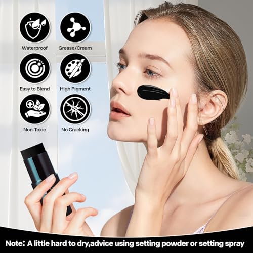 Specification: Go Ho Cream-Blendable Black Face Paint Stick (1.06 oz),Full-coverage Black Face Body Paint for Adult Children Halloween Cosplay Skull Zombie Vampire Skeleton SFX Makeup,Waterproof Eye Black Stick