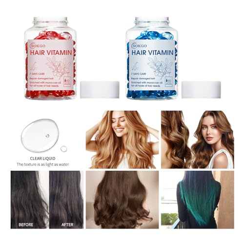 Precise dosage and easy use: Each hair care vitamin capsule provides the convenience of single use, ensuring precise application. Each 60-capsule capsule pack is perfect for quickly and perfectly giving your hair the nourishment it needs, making it convenient for daily care of fragile, damaged hair and split ends. Every time you can just open the capsule, rinse easily, and easily enjoy the moisturizing effect of your hair.