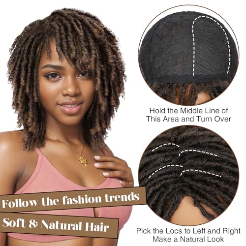 HANNE Dreadlock Wig Short Twist Wigs for Black Women and Men Afro Curly Synthetic Wig Faux Locs Braided Crochet Hair Wig (1B/30#)