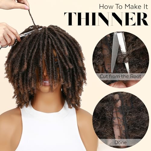 Wig Cap: Average Cap Size 20″-22″ with 3 Combs and 2 Adjustable Straps. Can be Adjusted to Fit Most of the Women, Afro Faux Locs Wigs for Black Women.