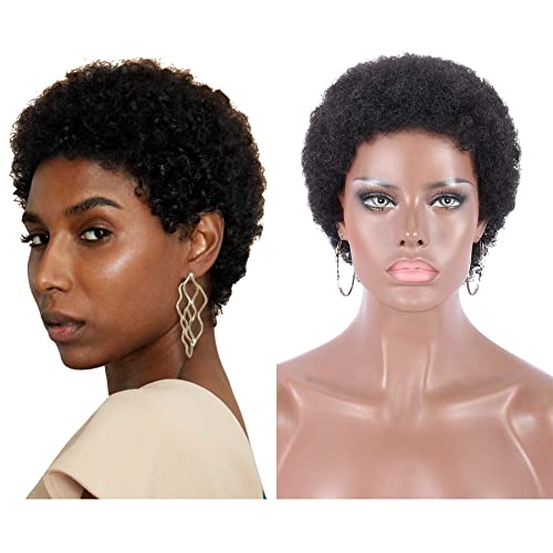 Specification: Kalyss Human Hair Short Afro Curly Wigs for Black Women Kinky Curly Wig Natural Looking Brazilian Full Hair Wig African American Replacement Women Wigs