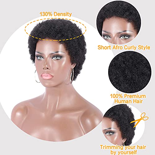 Kalyss Human Hair Short Afro Curly Wigs for Black Women Kinky Curly Wig Natural Looking Brazilian Full Hair Wig African American Replacement Women Wigs