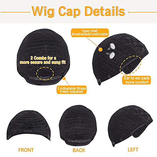 Cap Construction: Basic Wig Cap, Medium Size, Cap Circumference 22.5 Inches; Front to nape: 14.5 Inches; Side to side over top: 13 inches; None Lace Frontal, Full machine Made Human Hair, The Wig Cap has Elastic Bands to Adjust to Fit Your Head Size Well and Fixed Securely .