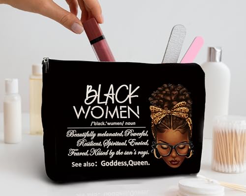 Specification: kdqua African American Makeup Bag, Inspirational Black Woman Gifts for Girl Afro Queen Linen Cosmetic Bag Zipper Pouch Travel Organizer Toiletry Bag,African American Black Gifts for Girls Friends