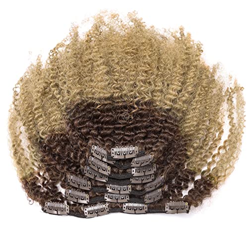 Specification: Lacer Hair 4A 4B Afro Kinky Curly Remy Human Hair Extensions Clip in Hair Extension Double Weft Human Hair Two Tone Clip in Curly Hair Off Black Fading to Blonde Strawberry #1B/27 10 Inch