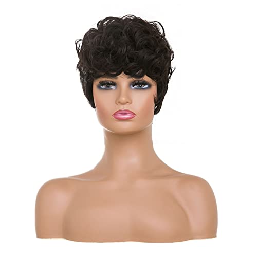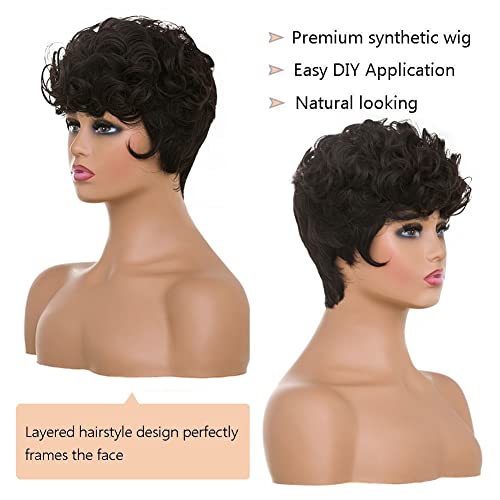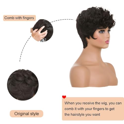 Specification: MOONSHOW Brown Pixie Cut Wig Short Curly Wigs for Black Women Dark Brown Short Cut Wigs Synthetic Pixie Cut Wig with Bangs Natural Wavy Short Layered Pixie Wig for African American Women(Brown)