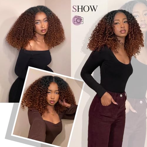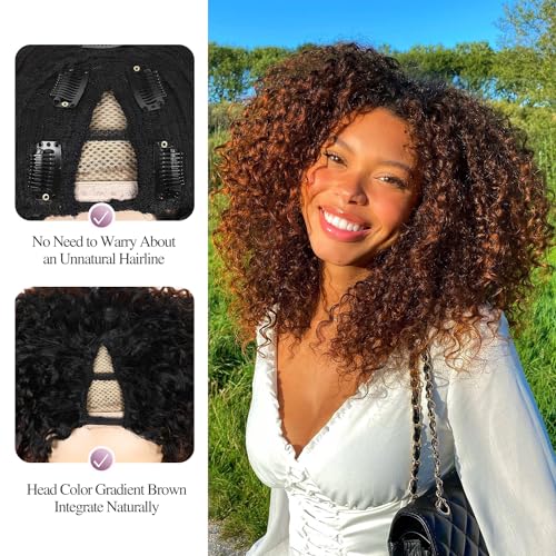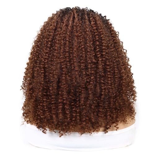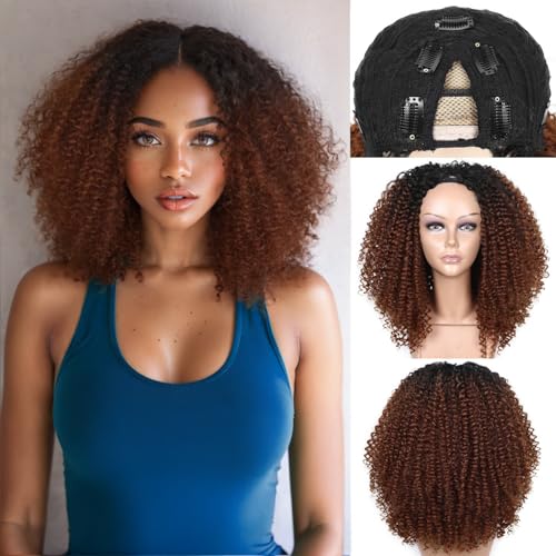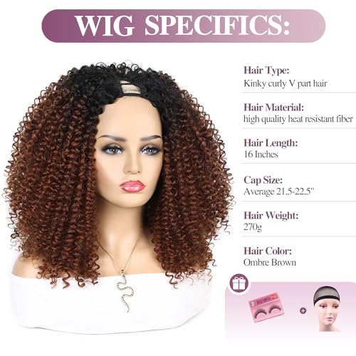 Specification: Quantum Love V part Curly Wigs Afro Curly Twist Out African American Wig for Black Women Afro Bomb Ombre Brown Kinky Curly Synthetic Glueless Wig 16 Inches
