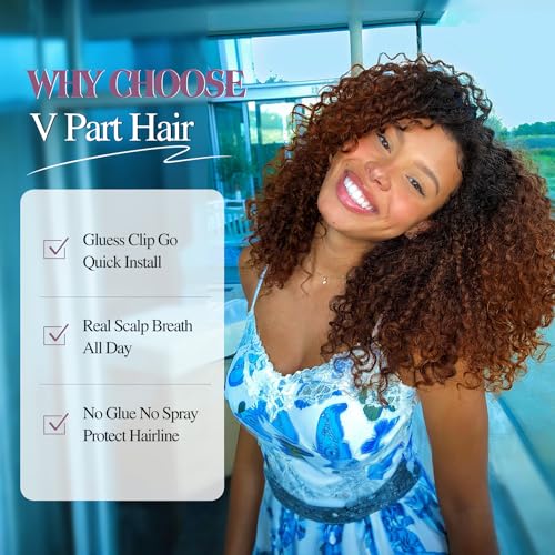 Free V Part Curly Wig: V part curly wig, no glue, no sew-in, no lace front wig, more healthy, friendly for beginners. Hairline can be shown naturally which makes the wig look realistic. And it is easier to wear than lace wig, save your time.