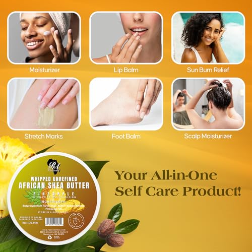 RA COSMETICS Whipped Shea Butter Pineapple – 6oz | 100% Pure & Natural African Shea Butter for Men & Women – Ultimate Handcrafted Moisturizer with Essential Vitamins for Radiant Skin