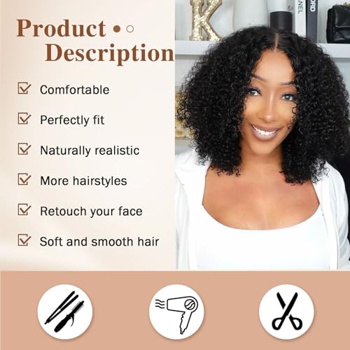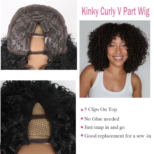V Part Wig Design: New upgrade u part wigs, Glueless Kinky Curly Wig no Leave out, no glue, no sew in, friendly to beginner. Show your own natural hairline, breathable and healthy to wear.