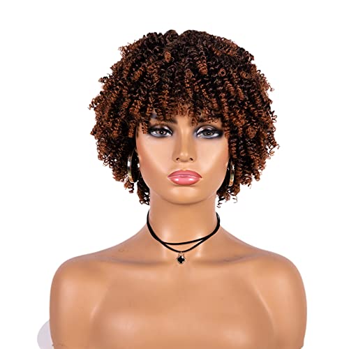 Short Afro Curly Wigs for Black Women, Soft Breatable Synthetic Curly Afro Wigs, Short Afro Wigs for Woman Cosplay Daily Party Use (1BT30)