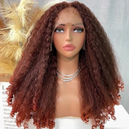 Specification: SOKU Afro Curly Lace Front Wig Synthetic Copper Red T Part 20 Inch Crimp to Curl Kinky Straight with Curly Ends Pre-plucked with Baby Hair Transparent Swiss Lace Yaki Texture Ginger Wigs for Women